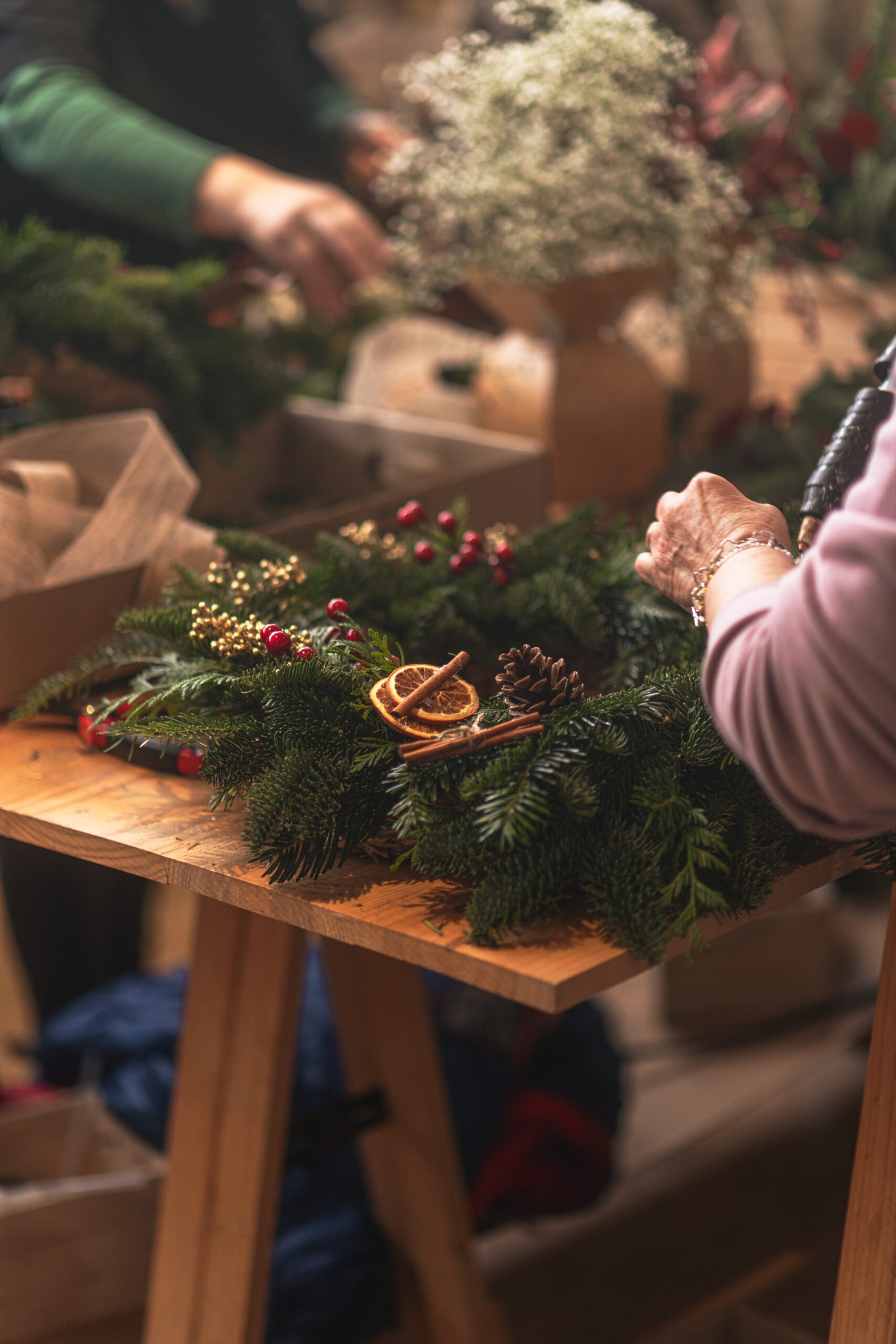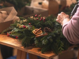 En este taller, aprenderás a crear una corona corona navideña natural y te la llevarás a casa.