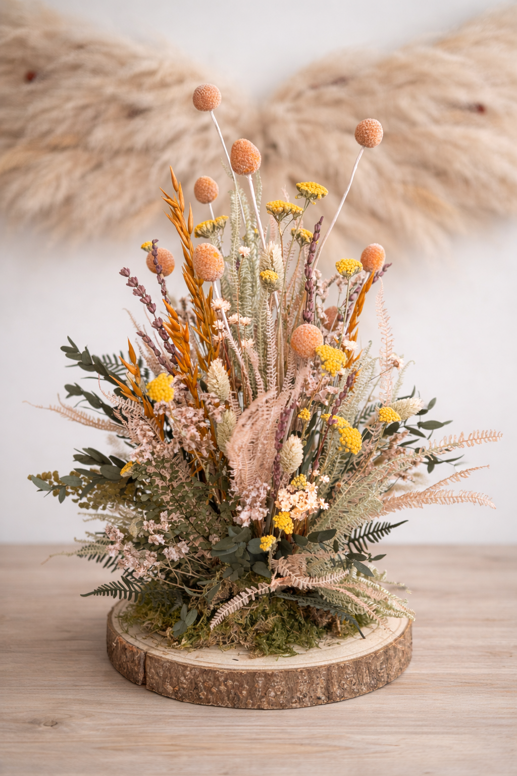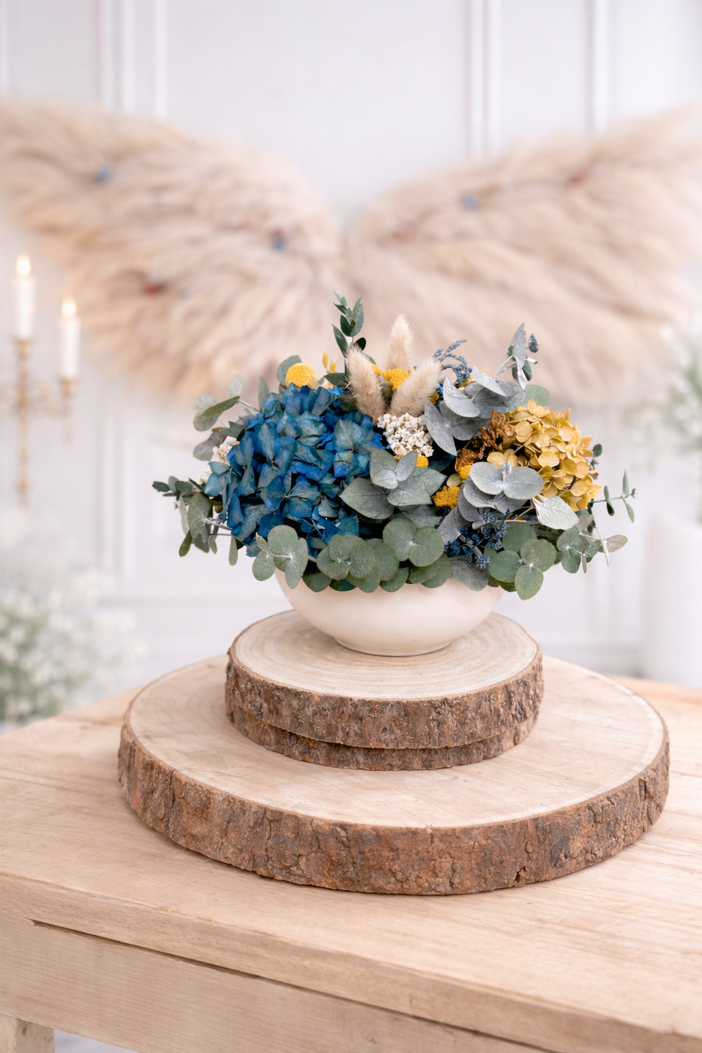 Taller Centro floral en cuenco cerámico (flores preservadas)